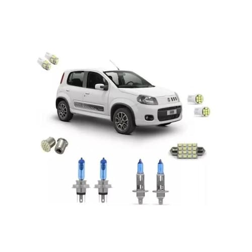 Uno vivace / mille way farol super branca + led novo Kit lâmpadas super branca + led novo uno vivace / mille way todos os anos Esta lâmpada emite luz com exclusiva temperatura de cor branca, gerando iluminação na cor super branca de tom azulado. O tom amarelado das lâmpadas vai dar lugar ao branco azulado produzindo o efeito esportivo. Ela permite que você dirija com mais segurança e conforto, devido a maior visibilidade alcançada através da luz . A lâmpada utiliza as conexões do seu carro sem precisar de adaptações ou relês, além de ter o mesmo consumo de lâmpadas convencionais. Principais características: Lâmpada automotiva h4 h1 Potência: 55w Lâmpada super branca com efeito esportivo Brilho 30% maior que lâmpadas comuns. Dados técnicos: Cor de emissão: branca Potência: 55w Tipo: h4 h1 Voltagem: 12v carro Homologado inmetro Itens inclusos: 02 - lâmpadas h4 super brancas farol baixo e alto 02 - lâmpadas h1 super brancas farol de milha 02 - lâmpada torre 5 led's t10 - pingo/farolete 01 - lâmpada torpedo 16 led's 41mm - teto 02 - pingos 8 led's t10 - luz de placa 02 - lâmpada de ré 1156 - 1 polo 22 led's Atenção: alguns veículos podem variar as lâmpadas utilizadas, de acordo com o ano e/ou a série do veículo. Por precaução indicamos que, em caso de dúvida, os clientes sempre consultem o manual do veículo ou fóruns especializados e outras fontes confiáveis para evitar possíveis divergências. Marca: Não Informado