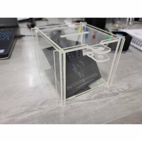 Urna de acrílico para colocação de cupons, fichas, dinheiro, papéis em geral, etc.