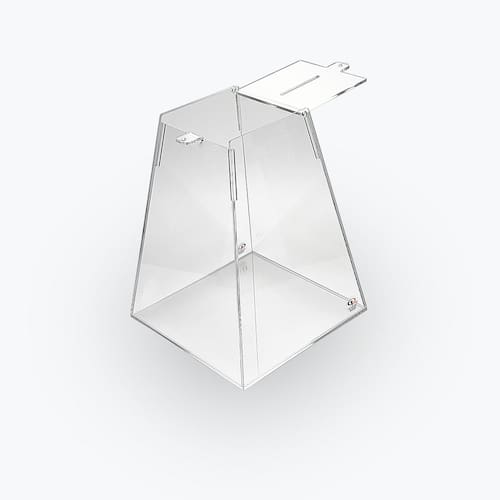 Modelo: 3mm Material: Acrílico Cristal Dimensões: Base 40cmX40cm - Altura 90cm - Tampa 25cmX25cm Peso: 5,700 Marca: GP Laser