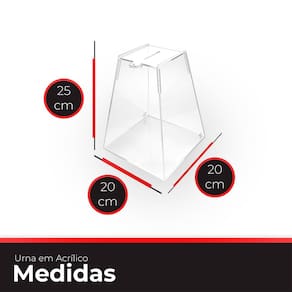 Modelo: 3mm Material: Acrílico Cristal Dimensões: Base 20cmX20cm - Altura 25cm - Tampa 11cmX11cm Peso: 0,722 Marca: GP Laser