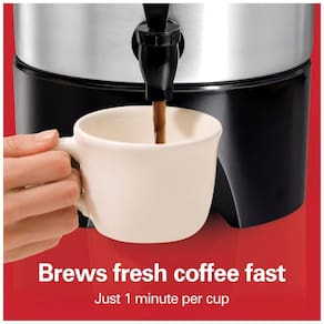 A Urna de Café Hamilton Beach 45 Xícaras apresenta aquecimento rápido, possibilitando preparo de uma xícara em cerca de 1 minuto, totalizando até 45 xícaras em 28 minutos. Equipado com sistema de aquecimento duplo, mantém o café quente por longo período sem superaquecer ou queimar, preservando a qualidade do sabor. O dispensador com alavanca de fácil uso permite servir com uma só mão, compatível com copos descartáveis e reutilizáveis.