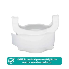 Orifício central para restrição da uretra sem desconforto.