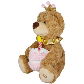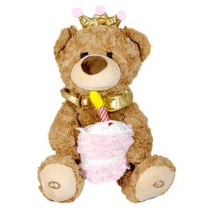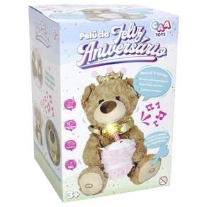 Ela canta a música Parabéns pra Você, e o mais mágico acontece: a vela do bolinho acende com luz enquanto a música toca, criando uma atmosfera festiva e encantadora. A diversão não para por aí A pelúcia ainda repete tudo o que a criança fala, tornando a brincadeira ainda mais interativa e hilária.