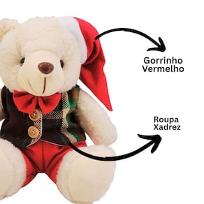 Urso Natalino Pelúcia Prime Creme Roupa Xadrez 20cm