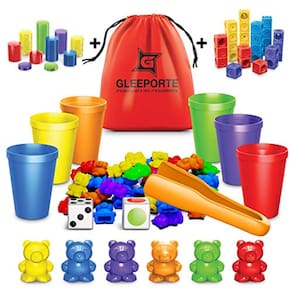 Ursos de contagem coloridos com copos de classificação coordenados | Montessori Brinquedo De Classificação E Contagem | Educacional para crianças e crianças (67 Pcs Set) | 60 Ursos | 6 Copos | Saco de armazenamento