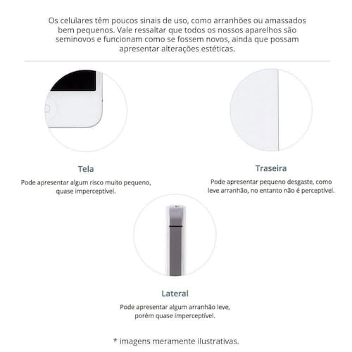 Excelente: Aparelho com poucos sinais de uso como pequenos arranhões quase imperceptíveis. Muito Bom: Aparelho com alguns sinais de uso, porém mais leves. Podem ser arranhões, riscos e/ou amassados. Bom: Aparelho com diversos sinais de uso mais nítidos, como arranhões, riscos e amassados.