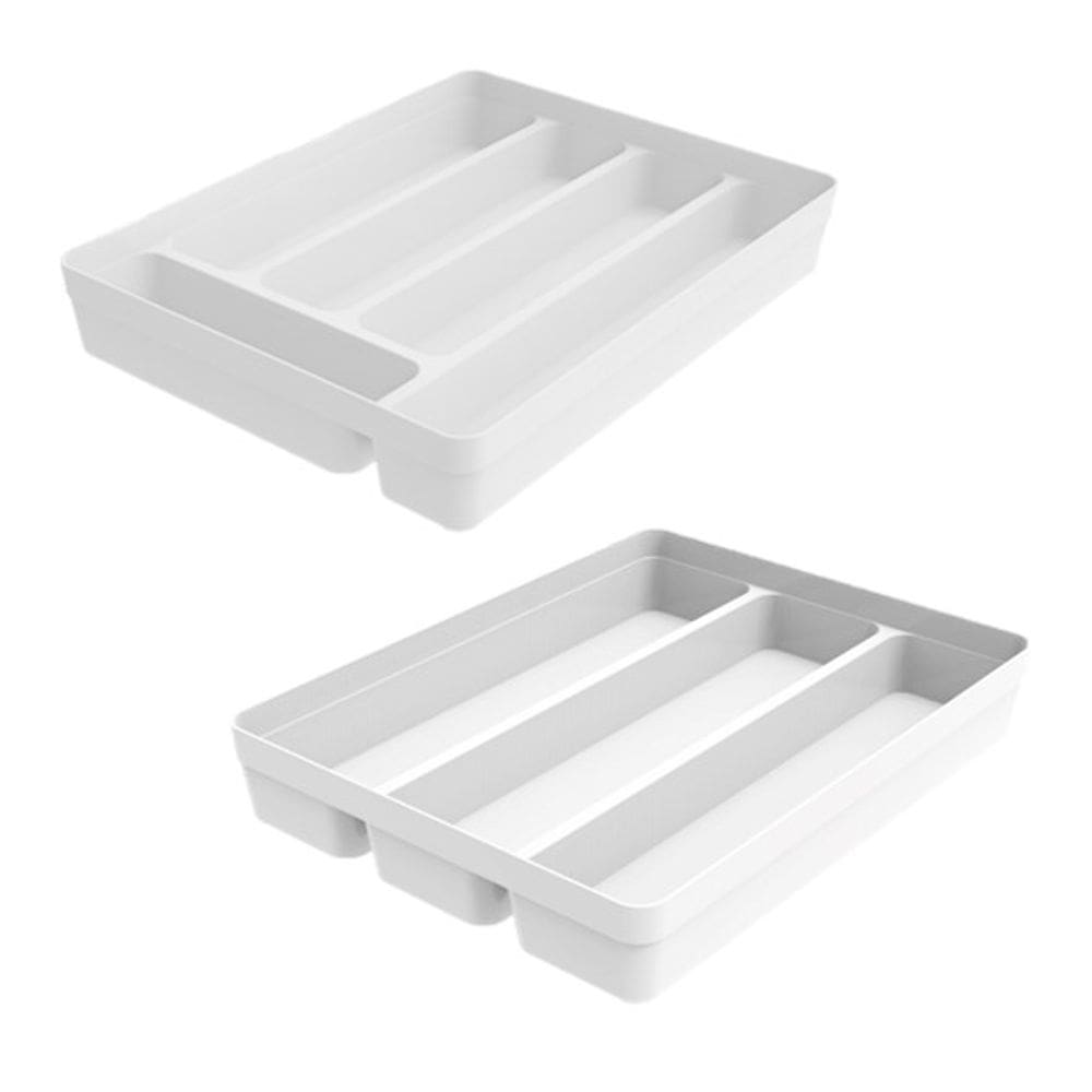Kit 2 Organizador de Talheres Utensílios Para Gaveta com Extensor Plástico Cozinha Branco - Crippa