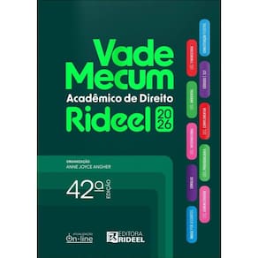 SEU VADE MECUM ACADÊMICO COM O JEITO RIDEEL DE SER! O Vade Mecum Acadêmico de Direito Rideel 2026.1 chega à 42ª edição com uma trajetória de sucesso e milhares de impressões vendidas, sendo, desta forma, o coadjuvante na vitória de concurseiros, oabeiros e profissionais. Além de possuir o maior conteúdo impresso do mercado, proporciona aos profissionais, aos estudantes de Direito e aos concurseiros acesso fácil e simplificado à vasta quantidade de normas do nosso ordenamento jurídico. A obra apresenta a Constituição Federal, principais Códigos, Legislação Complementar Geral, Legislação de Direito Previdenciário, Legislação de Direito Administrativo, Legislação de Direito Financeiro, Legislação de Direito Ambiental, Legislação de Direito Internacional, Regimentos Internos do STF e do STJ. Nas Leis que são conhecidas pelo "nome", adicionamos no cabeço para que facilite ainda mais a sua localização! Com isso, conseguimos ter uma familiaridade maior com o diploma normativo em questão! Ainda, visando agilizar a localização do conteúdo buscado, há os índices sistemáticos e alfabético-remissivos. Importante destacar que, para facilitar ainda mais a consulta do leitor, a capa traz um guia referencial de pesquisa. Assim, basta verificar nela a cor da seção que deseja consultar e localizá-la nas tarjas laterais da obra.Data de fechamento: ainda está em fechamento Acompanha livreto: Neste material você contará com Regimentos Internos (STF e STJ), Exposições de Motivos e Enunciados (SRT e Jornadas), que são os conteúdos restritos na maioria dos exames, de forma isolada, facilitando ainda mais sua consulta na hora da prova! E o melhor: sem surpresa na hora da prova, esse você pode levar!