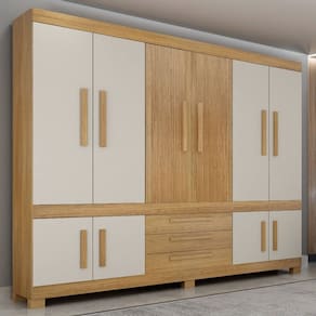 Guarda-Roupa Valdemóveis Bem Te Vi 10 Portas 3 Gavetas 100 MDF - Cinamomo/Off White