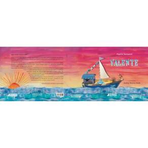 O texto conta a história de Valente, um barco que começa a narrativa como uma folha de jornal, dobrada por mãos firmes e marcadas pela vida em conjunto com mãos miúdas e vacilantes. O tempo passa e Valente é refeito em madeira e veleja no quintal. Quando Valente fica pequeno para suas aventuras, Capitão passa a sair para o mar num outro barco e, quando volta, traz peixes e sustento, mas não tem mais tempo para fantasia. Até que, um dia, Valente renasce em tamanho real e, finalmente, conhece mar e céu e descobre o que é felicidade. A prosa poética de Pepita Sampaio fala das fases da vida, da passagem do tempo, da chegada da maturidade – um tempo de descobertas e lembranças. Aborda também a relação pai e filho, a vida à beira-mar, a profissão de pescador. Psicologicamente, traz a questão de como mudamos ao longo de nossa existência, como as pessoas e as coisas influenciam nossa vida e nosso comportamento, como elas são capazes de nos transformar. As ilustrações de Audrey Moreira Hojda, construídas em forma de miniteatros, usam técnicas mistas, como aquarela, colagens, dobraduras e outros tipos de trabalhos manuais, evocando lembranças, cheiros, ruídos, formas, cores, texturas. Ao final, ela conta como foram realizadas e também sugere ao leitor a construção de seu próprio barquinho!