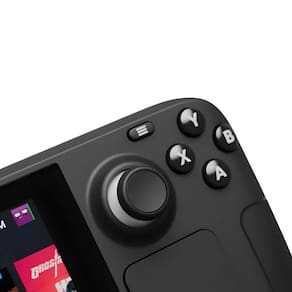 Projetado para sessões de jogo prolongadas, o Steam Deck possui controles de tamanho real, incluindo botões A/B/X/Y, D-pad, gatilhos analógicos e botões de ombro. O diferencial deste console são os dois trackpads quadrados de 32,5 mm com feedback háptico, que permitem jogar títulos projetados para mouse e teclado com precisão. Além disso, o dispositivo conta com giroscópio IMU de 6 eixos e quatro botões de empunhadura atribuíveis na parte traseira, oferecendo opções de personalização de controle superiores.