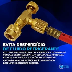 - Evita desperdício de gás Reduz a perda de fluido refrigerante ao conectar ou desconectar a mangueira do manifold.