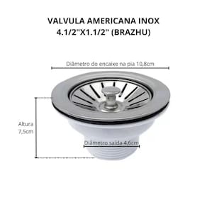 - Diâmetro do encaixe na pia: 4.1/2 ou 10,8 Centímetros (Medida Superior)