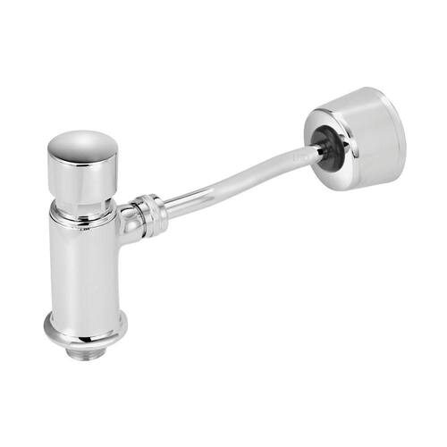 Válvula completa de descarga para mictórios de sanitários masculinos, composta por uma estrutura em metal, encorpada em latão e revestida em cromo, com botão em metal, possui mecanismo de acionamento manual e fechamento automático temporizado. Seu fechamento ocorre dentro de um período que pode variar entre 6 e no máximo 10 segundos após o acionamento. Sua aplicação propõe uma economia de até 70% de água no local de instalação, visando a economia de água em banheiros com grande circulação de pessoas. Com terminais em latão e anéis de vedação em borracha garantindo sua durabilidade e resistência e canopla de acabamento da parede e canopla de acabamento do mictório, garantindo uma boa eperiência de uso e estética para o ambiente. Material robusto com grande valor de qualidade agregado.