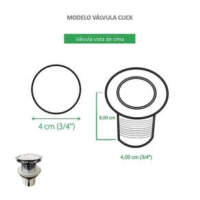 Válvula Click Cromada para Cuba de banheiro Esta válvula click traz a alta tecnologia sofisticação e qualidade, ideais para quem busca praticidade e eficiência. Com a função do escoamento da agua, possui um sistema rapido e simples com um clique, ela abre e fecha. Evita a entrada de insetos e do mau cheiro. Verifique as medidas do produto antes de efetuar a compra Especificações do produto: Válvula de escoamento Sistema Click Abre/Fecha ao apertar Para cubas de banheiro Não enferruja Evita o mau cheiro Evita a entrada de insetos 1 ano contra defeito de fabricação Dimensões do produto nas fotos Informações Técnicas: Marca: Reno Material: Aço Inox Formato: Redonda Cor: Cromada Acabamento: Brilho Atenção: Não incluso cuba e torneira. Dúvidas a Banho&Casa estará à disposição para atendê-lo de segunda a sexta das 8:30 - 17:30 hrs. Marca: Não Informado