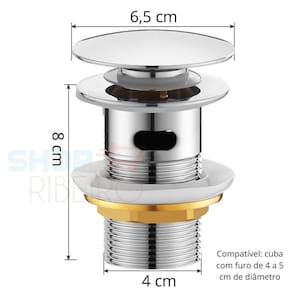 Válvula Click Cromada 1 1/4 Com Ladrão As válvulas com ladrão possuem uma abertura extra ao longo da rosca. Esse modelo de válvula é utilizado exclusivamente nas cubas com ladrão, as quais possuem um escape para a água não transbordar em casos de esquecimento da torneira Aberta e a válvula fechada. Por isso, a abertura extra na rosca deve estar em contato com a saída do escape da cuba. Produto desenvolvido com SISTEMA CLICK, uma tecnologia que permite abrir e fechar o fluxo de água com apenas um clique. Seu corpo é em Aço Inox de alta qualidade e tampa de Liga Metálica de Cobre e Zinco para pias, cubas e lavatórios em áreas externas ou internas. Possui vedação de silicone e espessura mais grossa, reforçando ainda mais a vedação. Tamanho PADRÃO de MERCADO BRASILEIRO 1 1/4 - 4 cm - 40 mm Fácil instalação. Evita a entrada de insetos e o mau cheiro. Ficha Técnica: Marca: DecKcasa Material: Aço Inox Diâmetro inferior 1 1/4 - 4 cm - 40 mm Tampa click: 6,5 cm de diâmetro Altura: 8 cm sem contar a tampa click Para cubas com duração entre 4 cm - 5 cm de diâmetro Para sifão universal Cor: cromado Peso: 0,195 Kg Garantia: 3 meses contra defeito de fábrica. Itens incluso: 1 Válvula click 1 1/4.