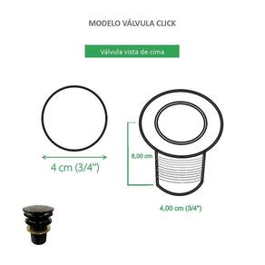 Válvula Click Preta para Cuba de banheiro Esta válvula click traz a alta tecnologia sofisticação e qualidade, ideais para quem busca praticidade e eficiência. Com a função do escoamento da agua, possui um sistema rapido e simples com um clique, ela abre e fecha. Evita a entrada de insetos e do mau cheiro. Verifique as medidas do produto antes de efetuar a compra Especificações do produto: Válvula de escoamento Sistema Click Abre/Fecha ao apertar Para cubas de banheiro Não enferruja Evita o mau cheiro Evita a entrada de insetos 1 ano contra defeito de fabricação Dimensões do produto nas fotos Informações Técnicas: Marca: Reno Material: Aço Inox Formato: Redonda Cor: Preta Acabamento: Fosca Atenção: Não incluso cuba e torneira. Dúvidas a Banho&Casa estará à disposição para atendê-lo de segunda a sexta das 8:30 - 17:30 hrs.