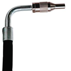 A entrada da válvula é de 1/2 pol NPT, um tamanho padrão que facilita a instalação e a compatibilidade com outros equipamentos. Além disso, inclui uma extensão flexível e um bico antigotejante e giratório, que evita derramamentos e desperdícios, além de facilitar o manuseio e o controle do fluxo de óleo.