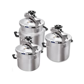 Linha: industrial Cor: preto e azul Material: borracha e nylon Marca: fulgor Tipo de panela: pressão Capacidade: 25l. 30l. E 35l. Composição: uma valvula de alívio em silicone para panela express.
