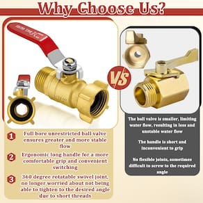 - Junta rotativa de 360°: em comparação com as válvulas esféricas de mangueira de jardim tradicionais, atualizamos a junta rotativa de 360 graus, para que você não precise mais se preocupar em não ser capaz de ajustar ao ângulo apropriado, proporcionando uma experiência de usuário mais confortável