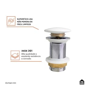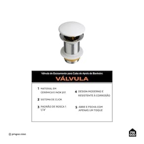 A Válvula de Escoamento para Cuba de Apoio de Banheiro é sofisticada e funcional com sistema click, que permite abrir e fechar o escoamento com apenas um toque, sendo compatível com cubas sem ladrão.