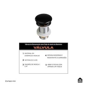 A Válvula de Escoamento para Cuba de Apoio de Banheiro é sofisticada e funcional com sistema click, que permite abrir e fechar o escoamento com apenas um toque, sendo compatível com cubas sem ladrão.