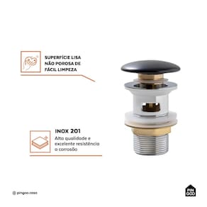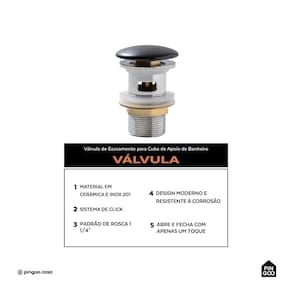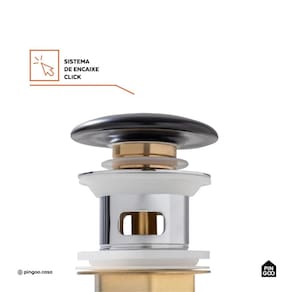 A Válvula de Escoamento para Cuba de Apoio de Banheiro é sofisticada e funcional com sistema click, que permite abrir e fechar o escoamento com apenas um toque.