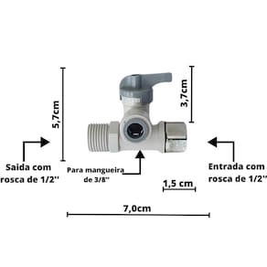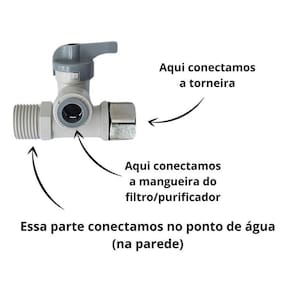 Perfeito para quem deseja adaptar um ponto de água que já tenha torneira, contendo rosca de 1/2 para entrada e saída de água e saída lateral para mangueira grossa de 3/8. A válvula de conexão foi desenvolvida para facilitar a instalação de purificadores, filtros, bebedouros. Pois com ele é possível utilizar o ponto de água que a sua torneira utiliza atualmente com um único produto.
