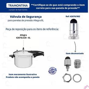 Nosso empenho é procurar o que há de mais atual e funcional no mundo culinário e para organização da sua casa, priorizando sempre a qualidade e a versatilidade dos produtos. Extremamente reforçado, garantido a segurança da panela . Modelos: 62676/220 Material: metal, baquelite Embalagem contém: 1 válvula de segurança tramontina allegra 6l item desmontado - antes de cozinhar, verifique seu equipamento; - não sobrecarregue sua panela; - mantenha sempre os cuidados necessários para o bom funcionamento; - limpe-a corretamente; - use sempre produtos de qualidade. Manutenção em dia= panela segura. Gostou Esse produto pode ser seu aguardamos sua compra Marca: Não Informado