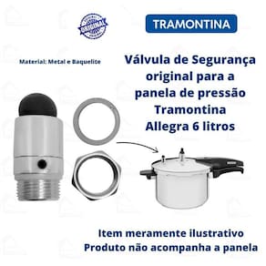 Nosso empenho é procurar o que há de mais atual e funcional no mundo culinário e para organização da sua casa, priorizando sempre a qualidade e a versatilidade dos produtos. Extremamente reforçado, garantido a segurança da panela . Modelos: 62676/220 Material: metal, baquelite Embalagem contém: 1 válvula de segurança tramontina allegra 6l item desmontado - antes de cozinhar, verifique seu equipamento; - não sobrecarregue sua panela; - mantenha sempre os cuidados necessários para o bom funcionamento; - limpe-a corretamente; - use sempre produtos de qualidade. Manutenção em dia= panela segura. Gostou Esse produto pode ser seu aguardamos sua compra Marca: Não Informado