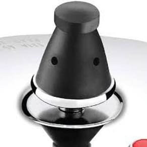Peso: 82 gr Cor : Preto Medida Aproximada 4x3,5x4 Válvula que regula a pressão interna da Panela de Pressão Pressure 4,2 Litros da Brinox Quando a Panela de Pressão atinge 80 KPa, a válvula de Pressão é acionada e começa a chiar. A partir desse momento comece a contar o tempo de cozimento