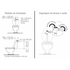 Controle externo: você regula externamente a vazão e o tempo de descarga apenas com uma chave de parafuso. Aprovada para uso em banheiros para deficientes pela facilidade de acionamentos.