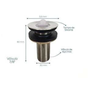 ====== Material: Aço Inox e Tampa de Silicone Dimensões: 7/8” - 3cm- 30mm Diâmetro tampa superior: 5,6 cm Diâmetro Inferior: 3 cm Para Sifão universal Acabamento: Inox espelhado Garantia: 2 anos contra defeitos de fabricação Quantidade: 1 Válvula de Lavatório 7/8"