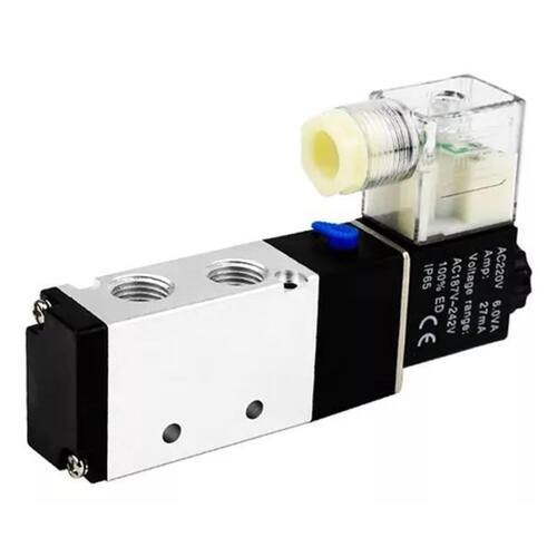 R: A Válvula Pneumática Modelo 4V410-15 5/2 Vias, Ent/Saída 1/2 é alimentada por uma tensão de 220 VCA.