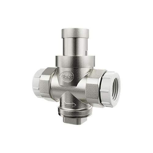 VÁLVULA REDUTORA DE PRESSÃO 3/4 SEM MANÔMETRO - BLUKIT Válvula redutora de pressão. Liga de cobre. Niquelado. Bitola 1/2 e 3/4. Rosca fêmea.