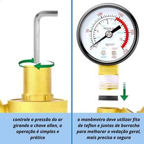 Além disso, a VRP TK-905 conta com uma saída para manômetro de 1/4, que já está incluso, permitindo que você monitore a pressão da água de forma prática e precisa. Essa válvula é compatível com água, podendo ser utilizada em diversos tipos de aplicações.