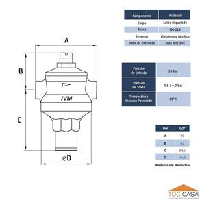 Dimensões da Válvula Redutora De Pressão: 1/2"