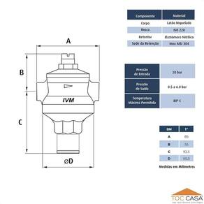 Válvula Redutora De Pressão 1" em Latão Niquelado com Manômetro Ivm Italy