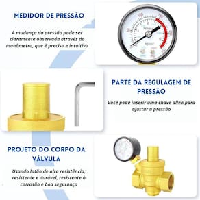 Essa válvula redutora de pressão é compatível com água e possui uma temperatura de trabalho de -10ºC a 110ºC. Com uma capacidade de regulagem de 1 a 16 bar 250 psi , ela garante que a pressão seja mantida dentro de uma faixa, protegendo os aparelhos residenciais e de produção subsequentes de variações indesejadas.