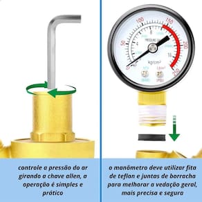 - Faixa de regulagem: 1 a 16 bar 250 psi