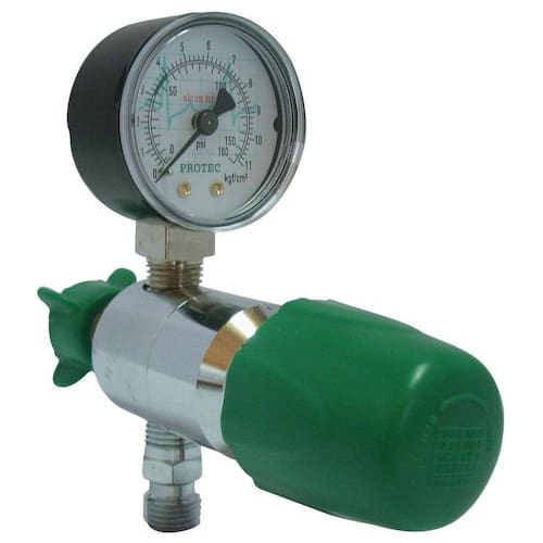 Válvula Reguladora Rede para Oxigênio ProtecDescrição:A Válvula Reguladora de Pressão para Rede de Gases, possui padronização ABNT, seu corpo e construído em latão cromado de alta resistência, possui manômetro para indicação da pressão ajustada. O ajuste da pressão é variável e feito através do botão de regulagem de fluxo que pode variar de 0 a 11 kgf/cm, possui pressão de entrada de até 7kgf/cm.As válvulas reguladoras de pressão estão disponíveis e três opções de gases medicinais: Ar comprimido medicinal, Oxigênio medicinal e Óxido nitroso.Finalidade:Foram desenvolvidas para serem conectadas à rede de gás medicinal de baixa pressão, onde a pressão de saída é regulada por meio de botão de regulagem e verificada pelo manômetro. Normalmente utilizadas para a alimentação de gases medicinais nos aparelhos de anestesia, respiradores e equipamentos que necessitam de uma pressão controlada.As válvulas reguladoras de pressão estão disponíveis em três opções de gases medicinais: Ar comprimido medicinal, oxigênio e óxido nitroso.Características:Corpo: Latão CromadoBotão Regulador: Poliamida PA Borboleta: Polipropileno PP com inserto em ZAMAKConforme a Norma ABNT NBR 11.906Especificações TécnicasPressão de Entrada: 7 kgf/cmPressão de Saída: 0 a 7 kgf/cm regulável Escala do Manômetro: 0 a 11 kgf/cmConexões de Entrada e Saída: Conforme a Norma ABNT NBR 11.906Tipos de Gás: Oxigênio / Ar Comprimido / Óxido Nitroso