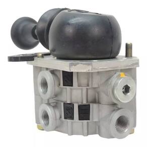 A função dessa válvula é permitir a regulagem manual da altura do veículo para facilitar o descarregamento da carga.