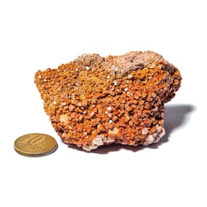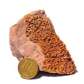 Vanadinita na Base de Laterita - Pedra Natural Bruta Destaques do Produto:\nTipo: Vanadinita sobre Laterita - Mineral Natural Bruto\nPeso: 100 a 150g \nDimensões: 60 a 80mm\nCor: Tons ocres com cristais avermelhados\nEstado: Mineral bruto não lapidado\nOrigem: Brasil\nDescrição do Produto Esta é uma autêntica Vanadinita natural sobre base de Laterita, uma peça rara e altamente valorizada por colecionadores de minerais e praticantes de terapias holísticas. Pode ser potencialmente utilizada para lapidação em cabochão devido à sua integridade estrutural. A Vanadinita é um mineral do grupo dos vanadatos, com cristais geralmente avermelhados ou alaranjados que se destacam sobre a base terrosa da Laterita. A peça apresenta textura bruta e formação natural, ideal para quem busca um exemplar único e de alto valor mineralógico ou esotérico. Utilizações e Benefícios Para Colecionadores:Uma peça de alto valor estético e mineral, com cristais bem formados sobre matriz de Laterita. Ideal para exposição em vitrines ou composições de coleção temática. Para Uso Esotérico e Energético:A Vanadinita é conhecida por suas propriedades de foco mental, aterramento e organização dos pensamentos. É uma pedra útil para quem precisa manter a mente clara, especialmente em momentos de estudo, planejamento ou decisões importantes. Lapidação:A peça possui bom tamanho e integridade para eventual lapidação em cabochão, ampliando suas possibilidades de uso em joias ou ornamentos esotéricos. Marca: CristaisdeCurvelo
