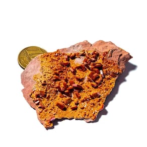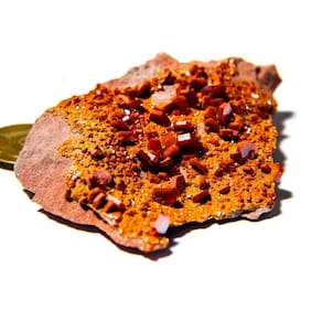 Vanadinita na Base de Laterita - Pedra Natural Bruta Destaques do Produto:\nTipo: Vanadinita sobre Laterita - Mineral Natural Bruto\nPeso: 30 a 50g \nDimensões: Média 70mm\nCor: Tons ocres com cristais avermelhados\nEstado: Mineral bruto não lapidado\nOrigem: Brasil\nDescrição do Produto Esta é uma autêntica Vanadinita natural sobre base de Laterita, uma peça rara e altamente valorizada por colecionadores de minerais e praticantes de terapias holísticas. Com Média de 70mm excelente tamanho, também pode ser potencialmente utilizada para lapidação em cabochão devido à sua integridade estrutural. A Vanadinita é um mineral do grupo dos vanadatos, com cristais geralmente avermelhados ou alaranjados que se destacam sobre a base terrosa da Laterita. A peça apresenta textura bruta e formação natural, ideal para quem busca um exemplar único e de alto valor mineralógico ou esotérico. Utilizações e Benefícios Para Colecionadores:Uma peça de alto valor estético e mineral, com cristais bem formados sobre matriz de Laterita. Ideal para exposição em vitrines ou composições de coleção temática. Para Uso Esotérico e Energético:A Vanadinita é conhecida por suas propriedades de foco mental, aterramento e organização dos pensamentos. É uma pedra útil para quem precisa manter a mente clara, especialmente em momentos de estudo, planejamento ou decisões importantes. Lapidação:A peça possui bom tamanho e integridade para eventual lapidação em cabochão, ampliando suas possibilidades de uso em joias ou ornamentos esotéricos. Marca: CristaisdeCurvelo