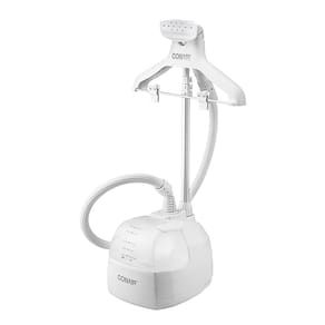 A Conair aproveitou todas as vantagens de seus vaporizadores de tecido de luxo e os incorporou em um design compacto, vertical e muito moderno. Não apenas é mais fácil de configurar do que um ferro e uma tábua de passar, mas também é suave com os tecidos, desde cortinas delicadas e transparentes até estofados e ternos de negócios. Você vai se apaixonar pela conveniência da vaporização de roupas. Mais fácil do que passar a ferro, os vaporizadores de roupas são uma maneira perfeita de se livrar de rugas, diminuir odores, eliminar percevejos e economizar tempo e dinheiro. Com pressa? Esta unidade está pronta para uso em apenas 45 segundos e capaz de fornecer 90 minutos de vapor contínuo."