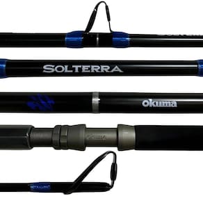 - Marca: Okuma - Modelo: Solterra - Utilização: Carretilha - Tamanho: 6'0" (1,83m) - Linha Recomendada: 40-80Lb - Ação: Rápida (Para pesca pesada) - Potência: Extra Pesada - Secção: 1 Parte (Inteiriça) - Casting: 50-120g - Tamanho total do cabo (Aproximados): 71 cm (33 cm até o Reel Seat) - Butt Cap com encaixe para cinto - Tipo de passador: Porcelana - Passadores: 6 + Ponteira - Material do Cabo: E.V.A - Blank: Fibra de Vidro Maciça - Peso Aproximado: 740g