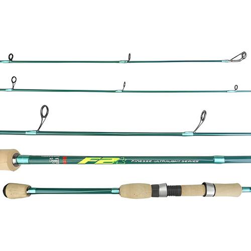 - Fabricante: Rapala - Modelo: F2 - Utilização: Molinete - Tamanho: 6`6 - 1,98m - Linha Recomendada: 4-12 Lb - Casting (Peso para Arremesso): 2 - 7g - Potência: Ultra Leve - Secção: Inteiriça - Tamanho do Cabo: 23,8cm - Tamanho total do cabo: 37,7cm - 7 passadores + ponteira - Cabo em Cortiça Bipartido - Peso Aproximado: 77 gr - Acompanha capa personalizada