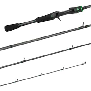 Seu blank é construído em carbono IM10, reforçado com Carbon Tape em “X”, proporcionando resistência, agilidade e toque refinado. O cabo bipartido em EVA com detalhes em alumínio oferece empunhadura firme e confortável, enquanto o Reel Seat Black Piano assegura encaixe seguro da carretilha.