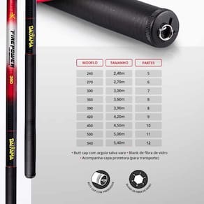 Vara Telescópica Firepower Daiyama Tamanho 3,00m Vara Telescópica Firepower DaiyamaAs varas Daiyama FirePower foram projetadas com lindo design e melhor qualidade para atender as necessidades dos pescadores mais exigentes.Ao mesmo tempo que oferece grande sensibilidade para perceber os toques mais sutis na linha.Vara telescópica lisa, leve, resistente, possui gomos curtos, com tubos reforçados e de fácil transporte, pois, quando fechada ocupa pouco espaço.Tem uma pegada mais firme na hora da briga com o peixe. Fabricada em fibra de vidro com ponteira maciça e cabo antiderrapante.É ideal para pesca de uma grande variedade de peixes como Tainha, Tilápia, Piau entre outros que exigem grandes arranques na fisgada.Produzida em fibra de vidro e com reforços em sua estrutura a torna uma vara com uma incrível resistência e durabilidade.Especificações:Fibra de vidro composto e argola salva VarasTamanho Fechada: 60cm Tamanho Das Variações: Vara telescópica de pesca firepower 2,40mVara telescópica de pesca firepower 2,70mVara telescópica de pesca firepower 3,00mVara telescópica de pesca firepower 3,60mVara telescópica de pesca firepower 3,90mVara telescópica de pesca firepower 4,20mVara telescópica de pesca firepower 4,50mVara telescópica de pesca firepower 5,00mVara telescópica de pesca firepower 5,40m Marca: Não Informado
