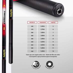 Vara Telescópica Firepower Daiyama Tamanho 3,60m Vara Telescópica Firepower DaiyamaAs varas Daiyama FirePower foram projetadas com lindo design e melhor qualidade para atender as necessidades dos pescadores mais exigentes.Ao mesmo tempo que oferece grande sensibilidade para perceber os toques mais sutis na linha.Vara telescópica lisa, leve, resistente, possui gomos curtos, com tubos reforçados e de fácil transporte, pois, quando fechada ocupa pouco espaço.Tem uma pegada mais firme na hora da briga com o peixe. Fabricada em fibra de vidro com ponteira maciça e cabo antiderrapante.É ideal para pesca de uma grande variedade de peixes como Tainha, Tilápia, Piau entre outros que exigem grandes arranques na fisgada.Produzida em fibra de vidro e com reforços em sua estrutura a torna uma vara com uma incrível resistência e durabilidade.Especificações:Fibra de vidro composto e argola salva VarasTamanho Fechada: 60cm Tamanho Das Variações: Vara telescópica de pesca firepower 2,40mVara telescópica de pesca firepower 2,70mVara telescópica de pesca firepower 3,00mVara telescópica de pesca firepower 3,60mVara telescópica de pesca firepower 3,90mVara telescópica de pesca firepower 4,20mVara telescópica de pesca firepower 4,50mVara telescópica de pesca firepower 5,00mVara telescópica de pesca firepower 5,40m Marca: Não Informado
